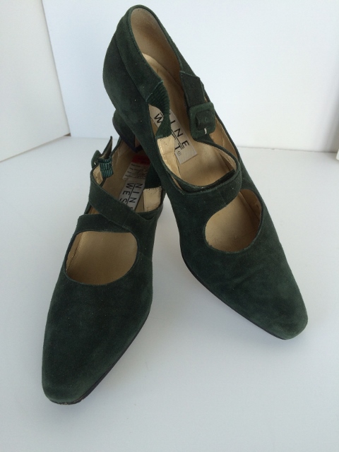 Vintage 9 West brand deep Evergreen all leather suede upper pumps. 7.5 Narrow