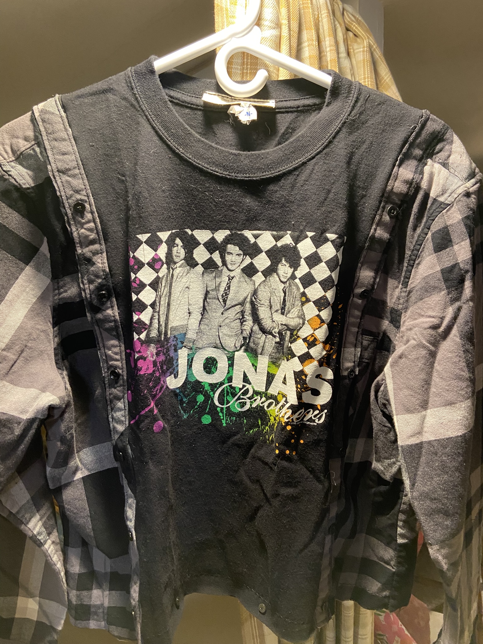 Upcycled 2008 Jonas Brother Tour T-shirt insert Flannel shirt Med. Women